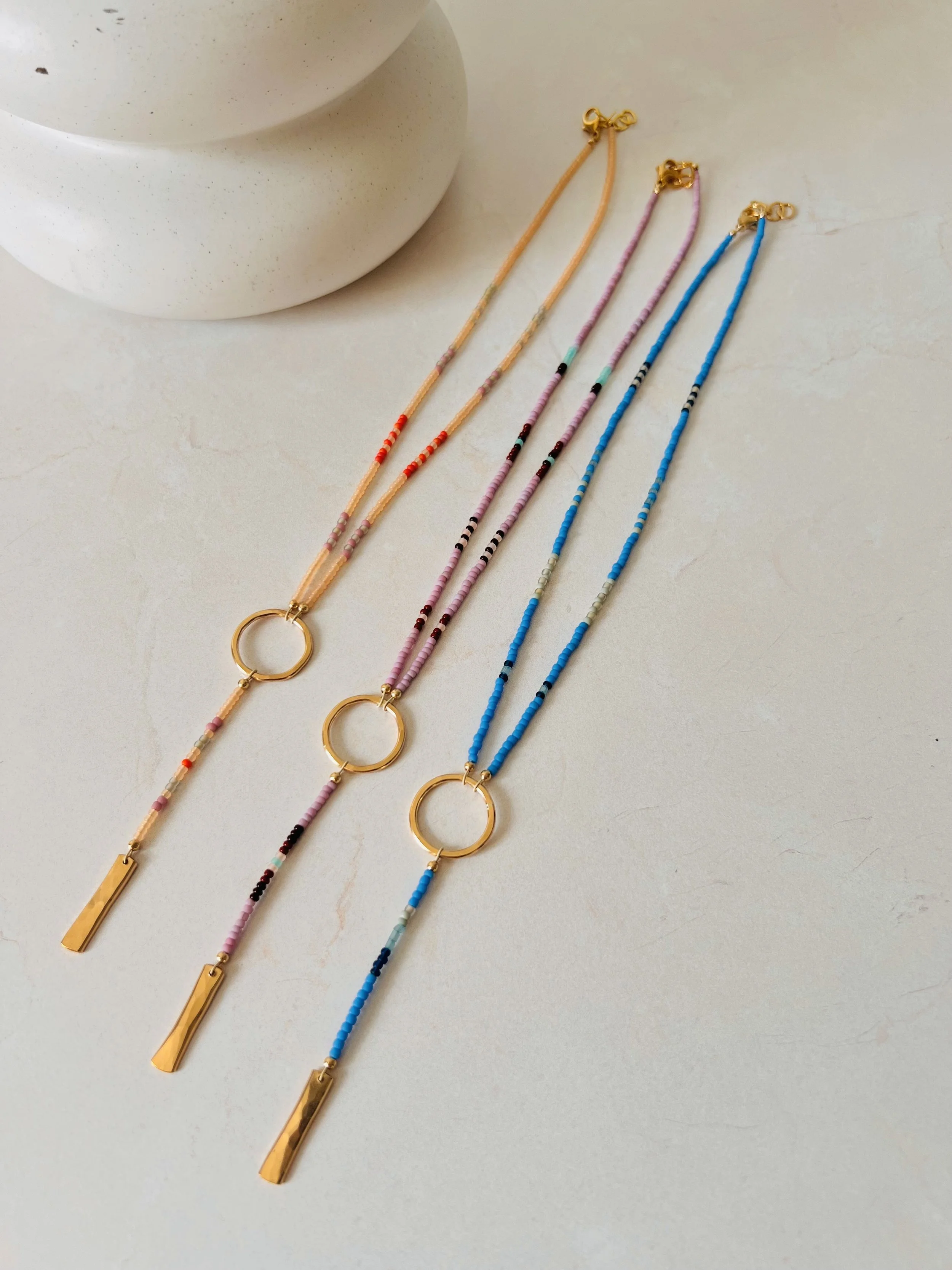 ꩜ oh hello ꩜ ꩜ summer shop update ꩜ ꩜ circles necklace ꩜ from $55.00 ꩜ alt fringe ꩜ from $55.00 ꩜ triangle lariat ꩜ from $98.00 ꩜ beaded lariat ꩜ from $90.00